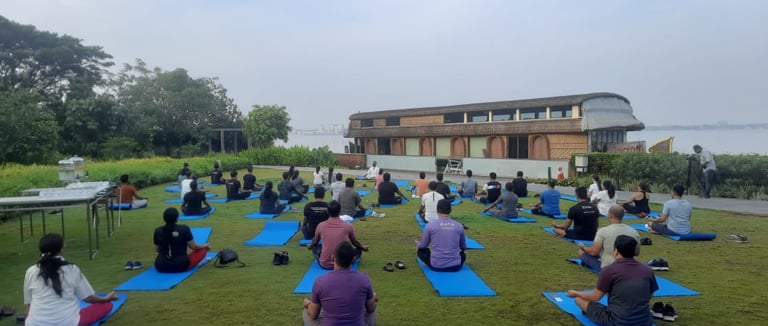 We often conducts group yoga sessions at Grand Hyatt Kochi Bolgatty.